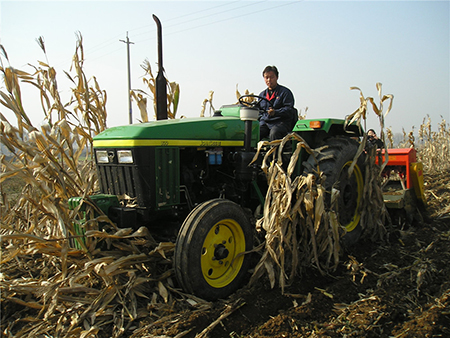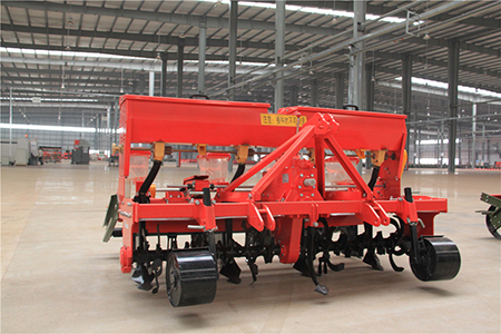 該機可以再也米稈直立地、秸稈還田地、小麥高茬浮稈地、深翻地等不同前茬條件下,一次性完成滅茬稈、開溝、播種、施肥、覆土、鎮(zhèn)壓等多道工藝。配置指甲式的玉米精量排種器與勺式的相比在同一質(zhì)量下由每小時前進5km提高到8km。底盤采用變速旋耕機,可根據(jù)拖拉機不通的前進速度和當(dāng)?shù)氐霓r(nóng)藝要求、土質(zhì)差別,靈活變換三種刀軸轉(zhuǎn)速,徹底解決了拖拉機跑的快效果差,跑的慢了效益差的問題。