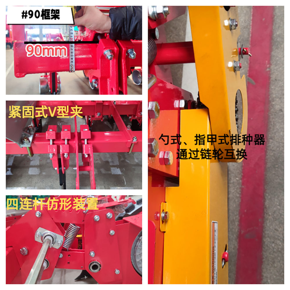 本機具是一款多功能高效專業(yè)播種玉米機械, 采用加強型開溝犁體,指夾和勺輪式兩選的精量排種器, 可一次性完成 開溝 、施肥 、播種 、覆土 、鎮(zhèn)壓等工序 。
