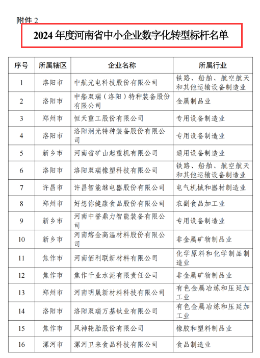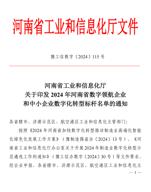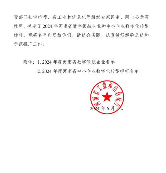 河南省省級中小企業(yè)數(shù)字化轉(zhuǎn)型標桿企業(yè)